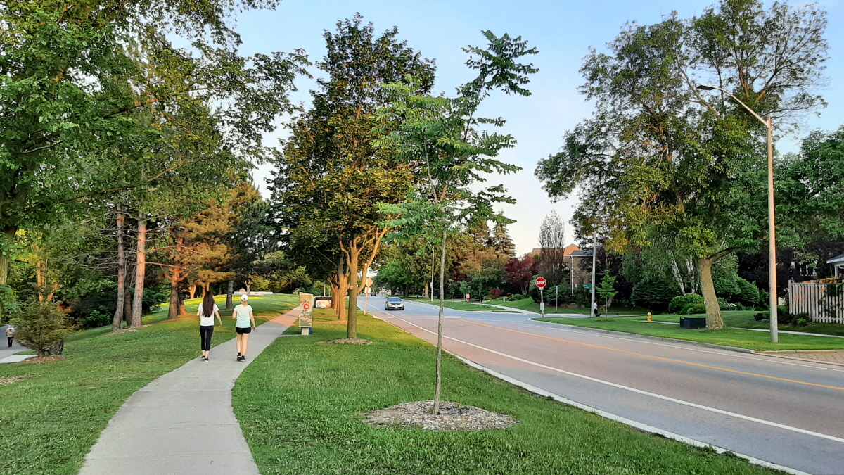 Trail 의 마지막 부분이 다가오고 있다. 왼쪽은 Toogood Pond Trail 이고, 오른쪽에는 동네 길이 나타난다.