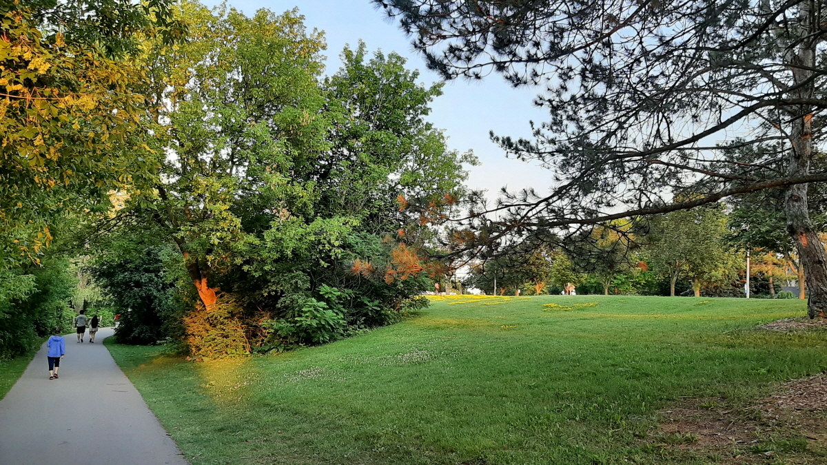 긴 여름날의 오후 8시가 되니까 드디어 저녁노을이 드리우기 시작하면서 걷는 사람이 더 많아지는 것 같다.