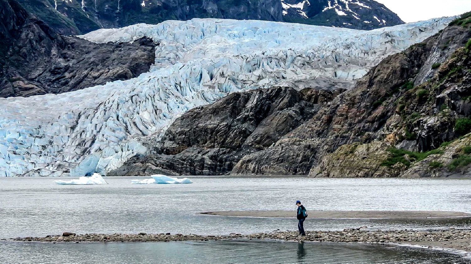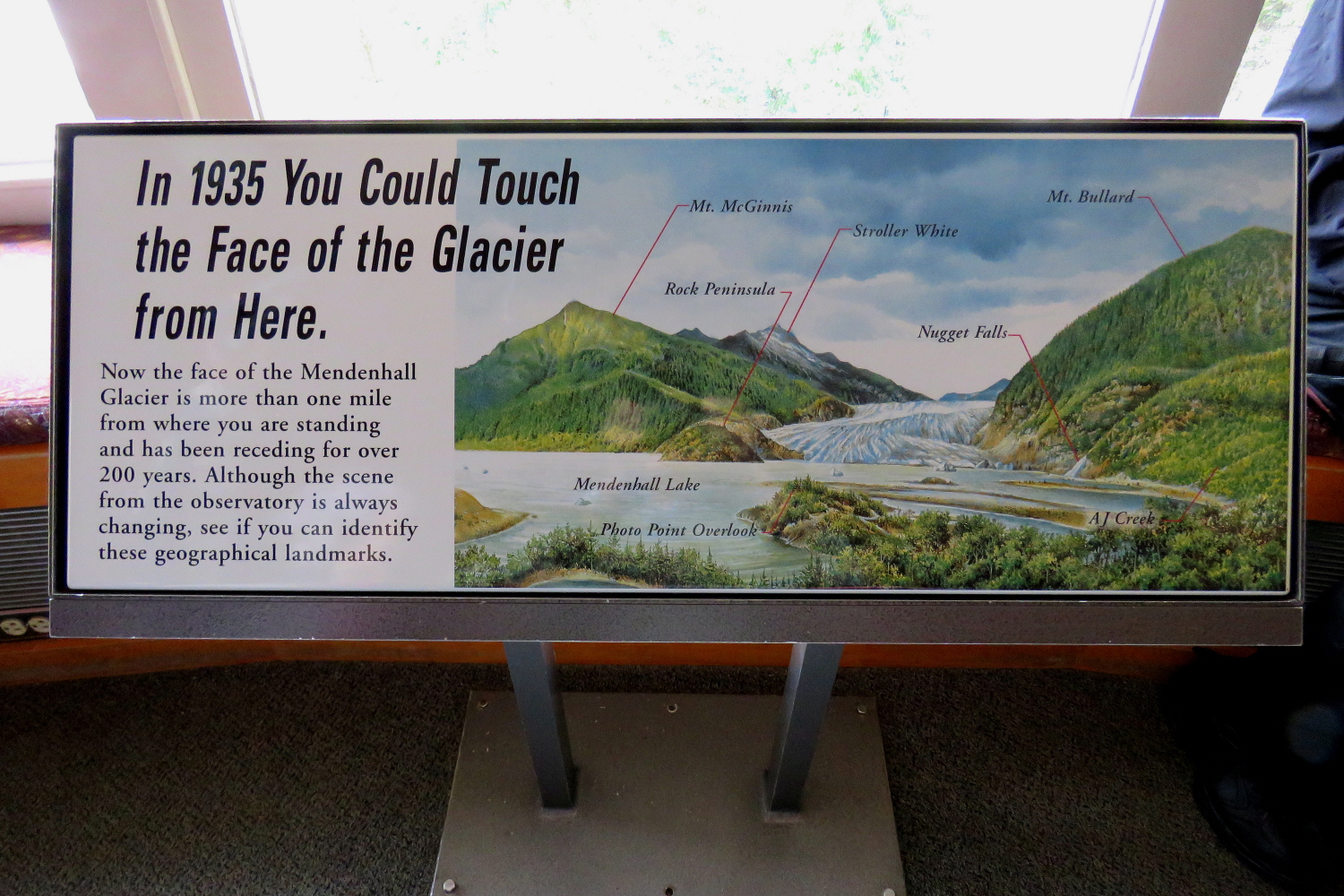시내에서 자동차로 20분 정도 떨어진 Mendenhall Glacier (멘덴홀 빙하) 로 왔다. Juneau Icefields (주노 빙원) 에 있는 많은 빙하 중에서 Juneau 시내에서 제일 가까운 빙하이다. Eagle 도 볼 수 있다고 게시판에 나와 있다. 우리를 데려다준 운전사도 Eagle 을 만날 수 있다고 했는데.....