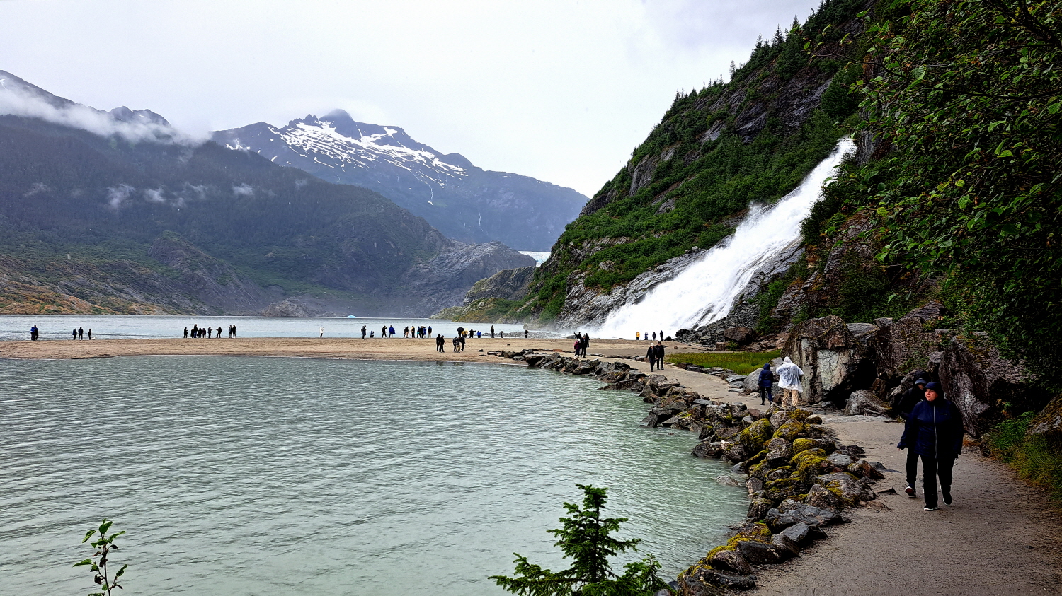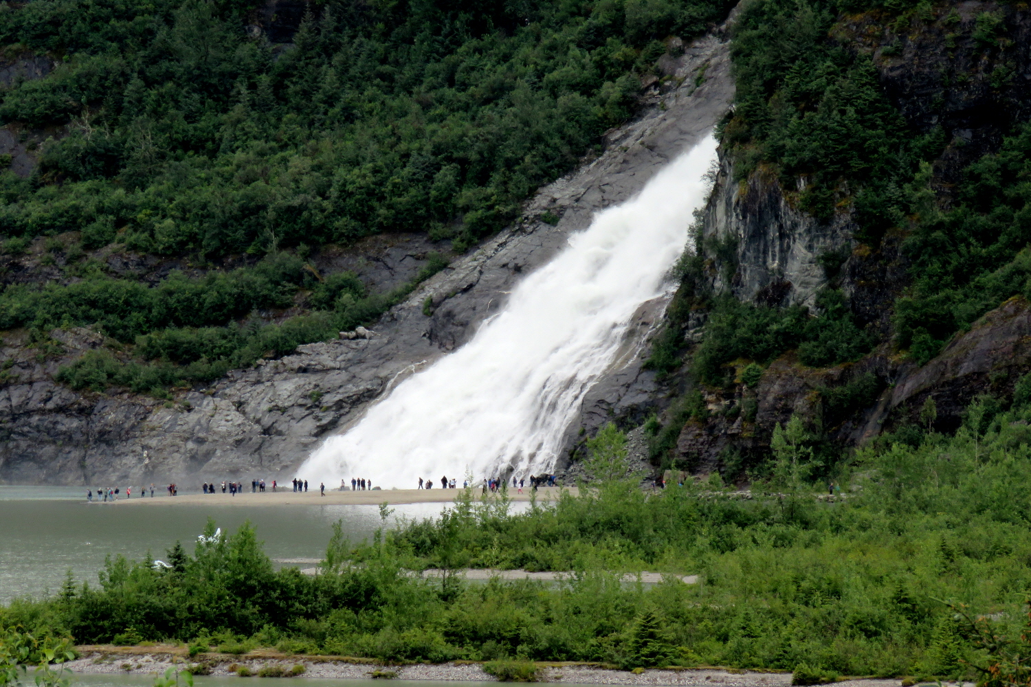 드디어 폭포에 도착했다. 사진 몇 장을 누르고 떠난다. Juneau 빙원 어디에서 흘러내려온 물이 폭포를 이루고 있다.