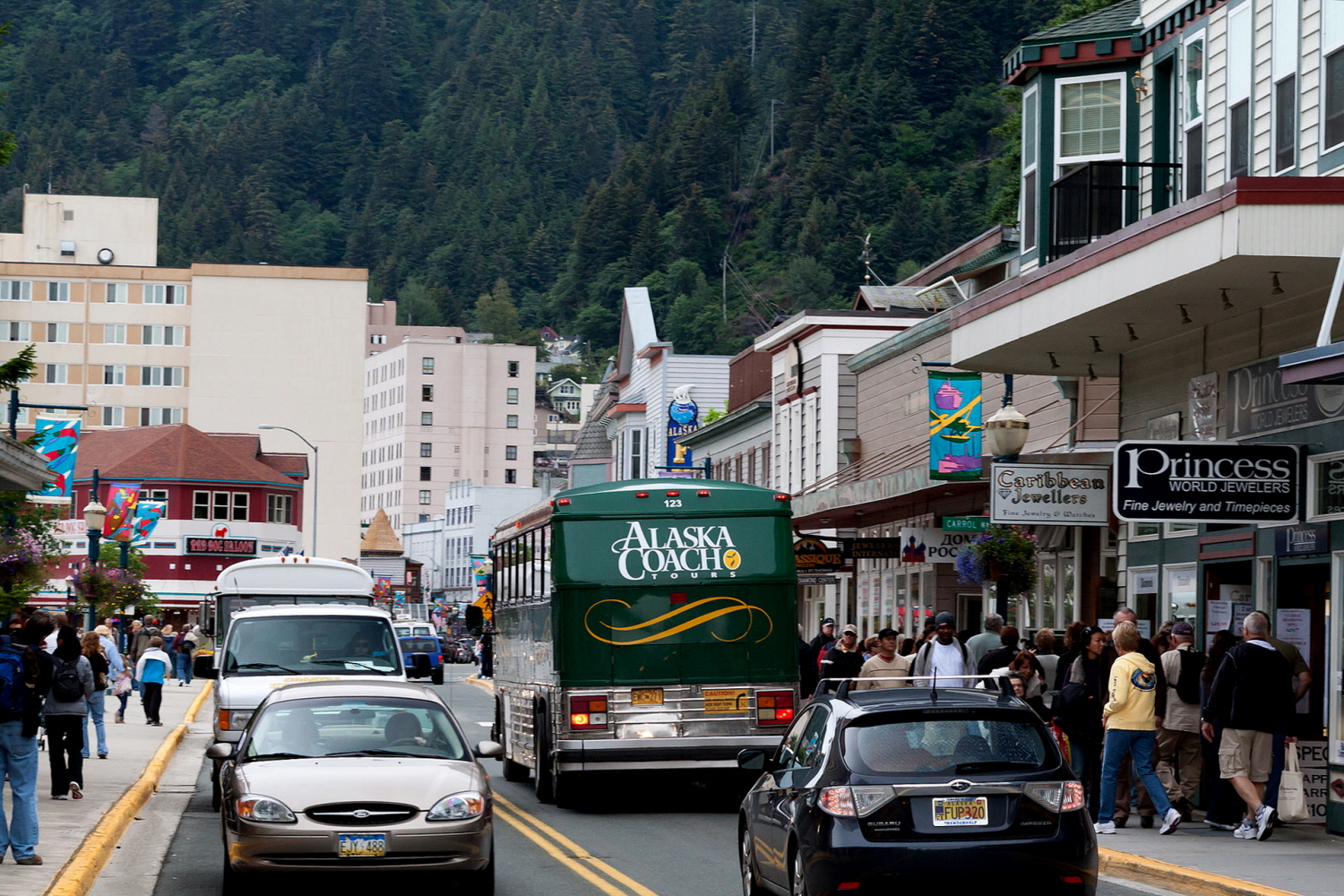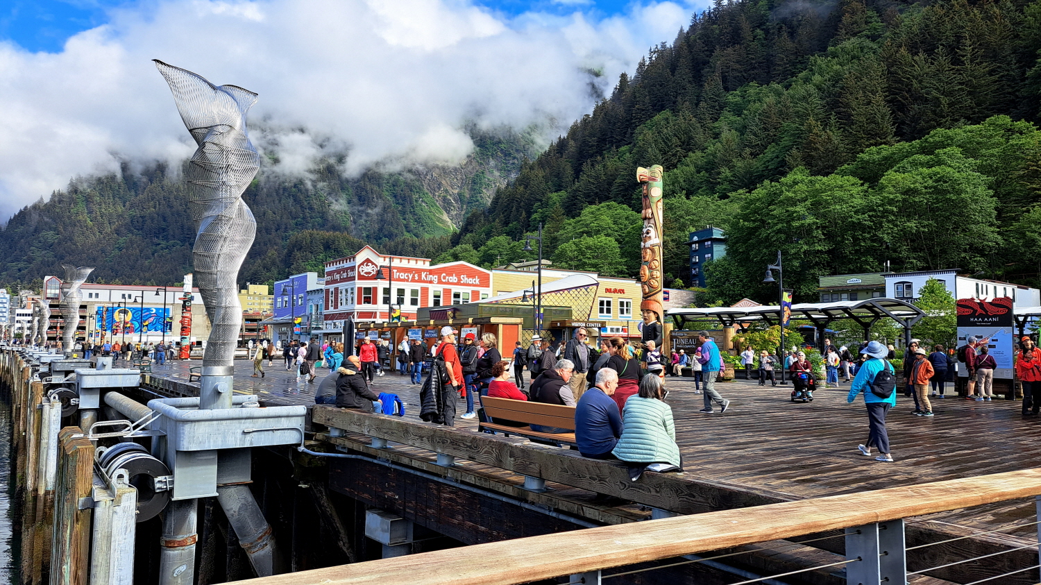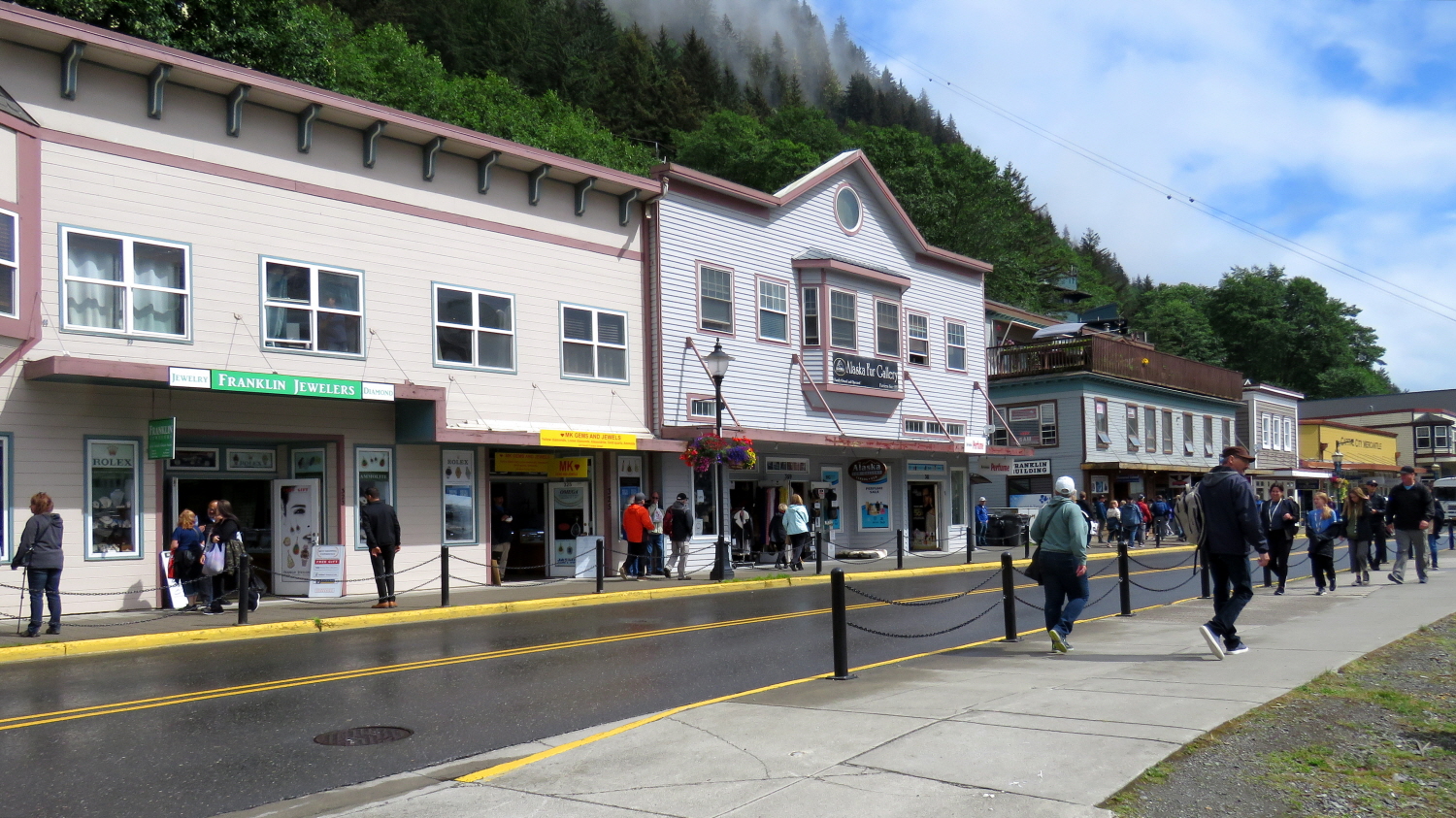 Downtown 은 부둣가와 바로 맞붙어있다. 북적대는 인파와 예쁘게 단장한 건물, 화단들로 매우 아름답다. Juneau 는 시즌이 시작하는 5월부터 9월 사이에는 매일 평균 약 6천 명이 유입된다. 그러나 오늘은 최고의 Peak Season 인 7월 중순이다. 그리고 5대의 거대한 Cruiseship 이 입항해 있으니 승객들만도 1만 3천~1만 5천 명. 더불어 배의 많은 승무원들도 있으니, 인구 3만 2천 명의 이곳 Juneau 는 방문객으로 매우 북적인다. 지금 이곳 바로 부둣가의 Downtown 은 지나다니는 사람들 거의 모두가 방문객이다.