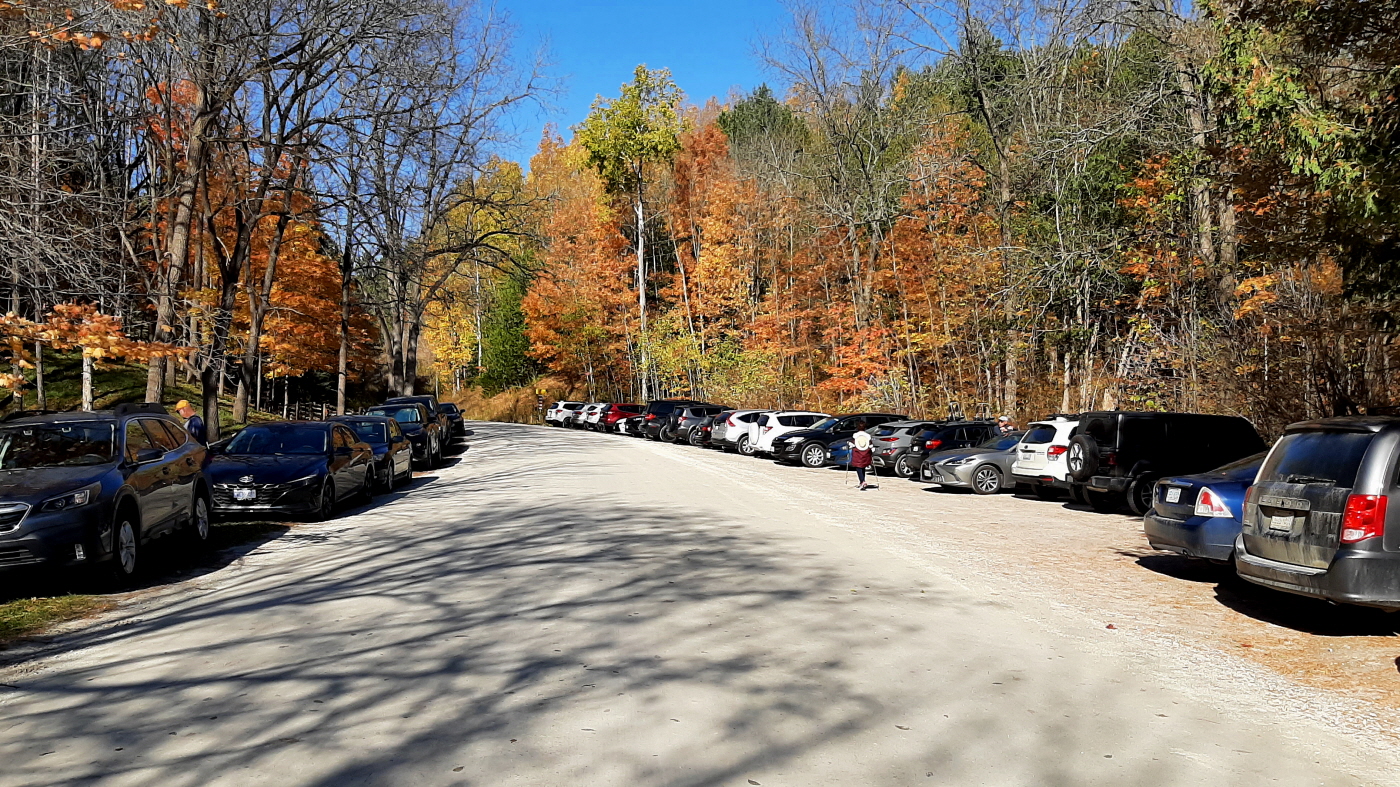 와~ Trail 을 끝내고 주차장에 도착하니, 주차장이 넘쳐서 길 양옆으로까지.... 평시에는 10대 정도가 주차되어 있었는데 지금은 30~40대. 10월의 2번째 마지막 토요일인 오늘 날씨가 너무 좋다. 섭씨 21도. 그리고 하루 종일 구름 한 점 없는 푸른 하늘에 햇빛이 쨍쨍한 최상의 조건이다.