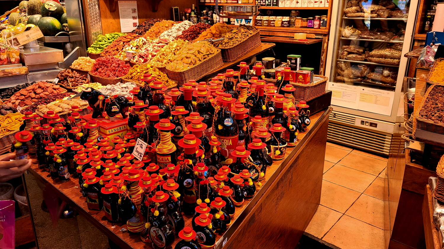Catalonia 특산의 Hard Liquor, 그리고 오른쪽 붉은 뚜껑의 병들은 아마도 농축된 Sangria 과일주 이리라 추측된다.