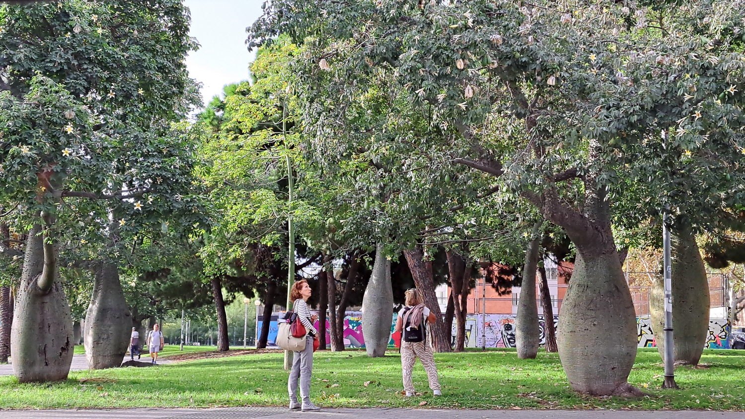 2024년 10월 9일 (수). 여행 17일째. 여행의 마지막 날이다. 차를 타고 공항으로 가면서 몸통이 통통하게 둥그런 나무들이 자라고 있는 공원을 지나고 있다. 공원을 거닐던 이분들도 대단히 신기한 듯이 쳐다보고 있다. 나무의 이름이 무엇인가 찾아보니 매우 길다. White Floss - Silk Tree. 너무나 이름이 길다. 알기 쉽게 병나무로 하면 어떨지... 아니면 Bowling 나무? 남미 알젠티나의 브에노스 아이레스, 그리고 중동의 카타르에서도 자란다고 알려진 나무이다.
